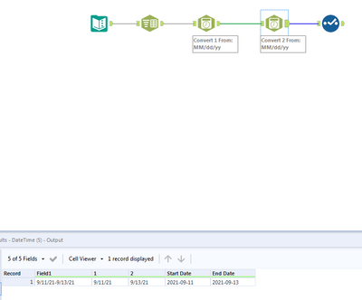 The original field contained 9/11/21-9/13/21. I parsed it to 2 new fields and then used a Data Cleansing tool to auto format the date as YYYY-MM-DD .